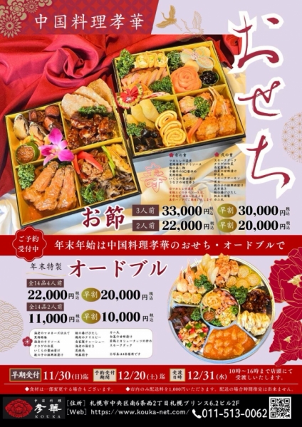 年末年始の特製おせちと特製オードブルのご案内です!丹精込めてご用意した特別なお料理がお客様の食卓...